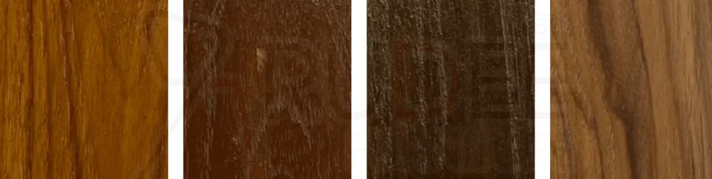 ไม้สัก คือ วัสดุที่ให้ความรู้สึกอบอุ่นและมีชีวิต เหมาะกับร้านที่อยากให้ลูกค้ารู้สึก “เหมือนนั่งกินข้าวที่บ้าน” สีและลายไม้แท้จะเปลี่ยนเล็กน้อยตามแสง ทำให้โต๊ะดูมีเสน่ห์เฉพาะตัว