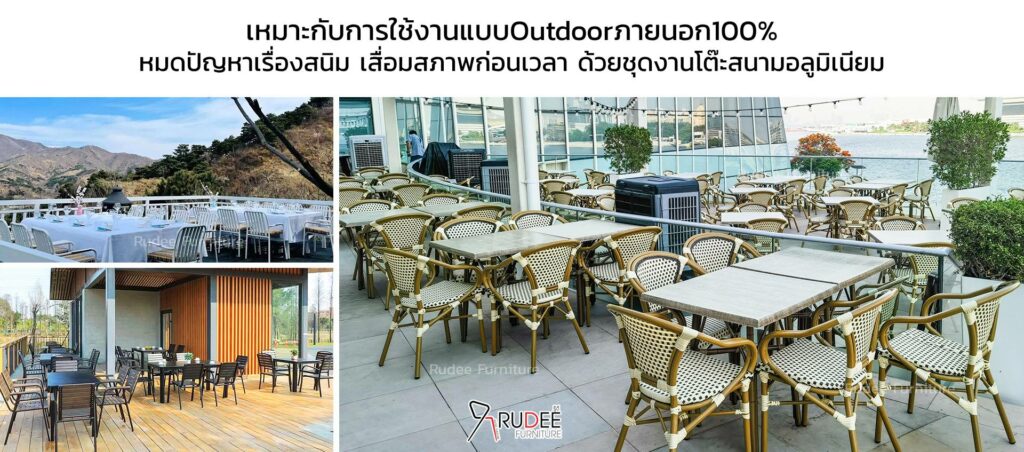 โต๊ะเก้าอี้สนามอลูมิเนียม ทนแดด ทนฝน สไตล์มินิมอล