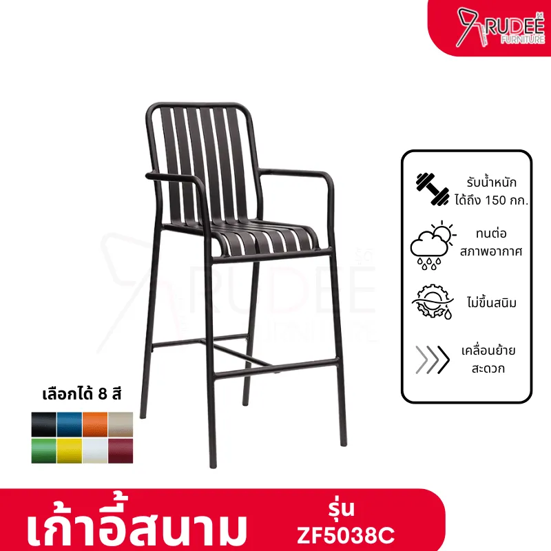 เก้าอี้บาร์อลูมิเนียม 7สี มีท้าวแขนอลูมิเนียมภายนอก กันสนิม100%โต๊ะคาเฟ่ ราคาโรงงาน