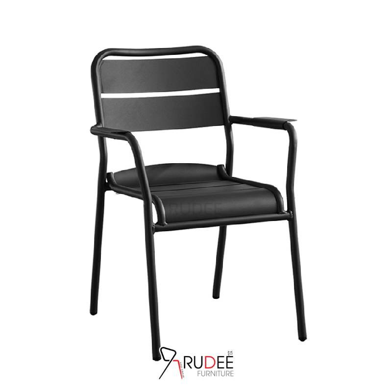 เก้าอี้สนาม เก้าอี้อลูมิเนียม 1ที่นั่งสีดำ มีท้าวแขน