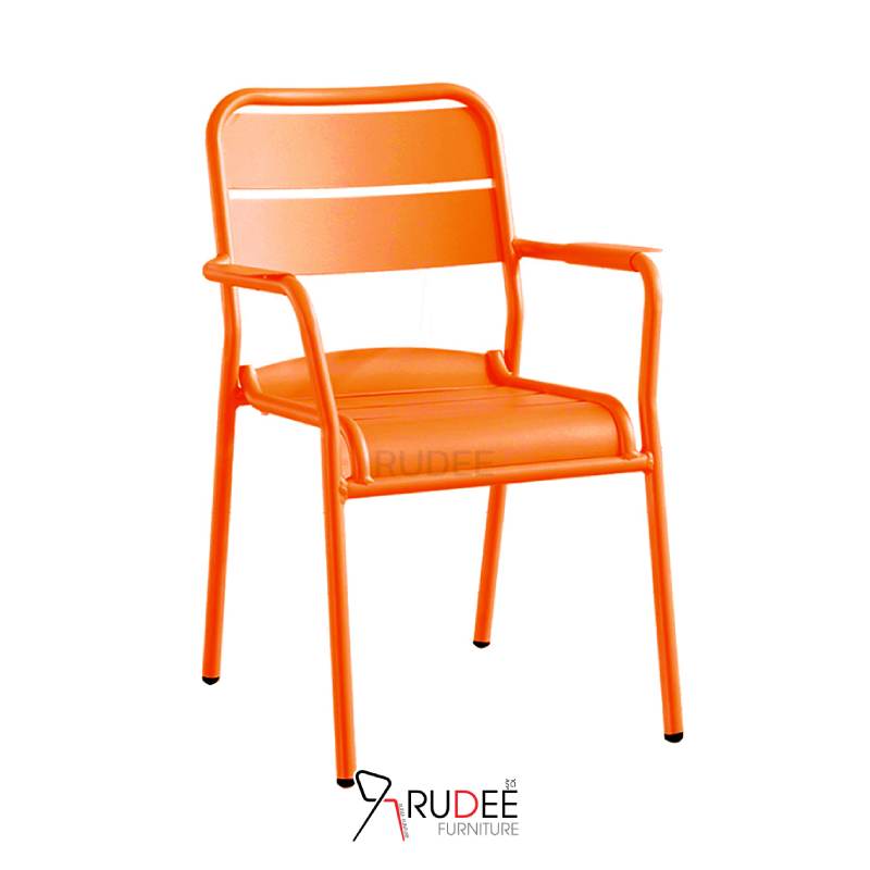 เก้าอี้สนาม เก้าอี้อลูมิเนียม 1ที่นั่งสีส้ม มีท้าวแขน