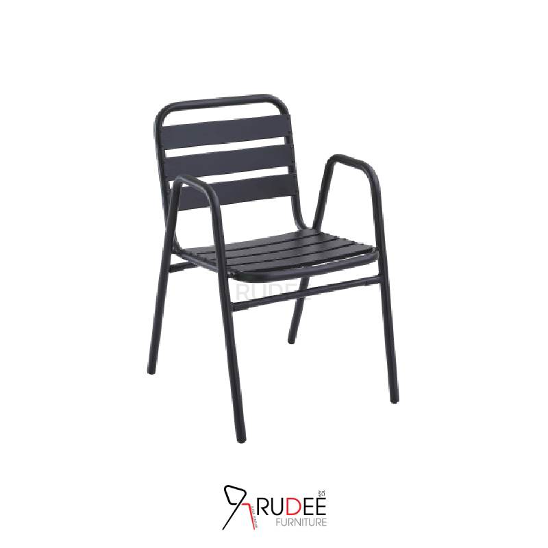 เก้าอี้สนาม เก้าอี้อลูมิเนียม 1ที่นั่งสีดำ ม้านั่งสนาม มีท้าวแขน