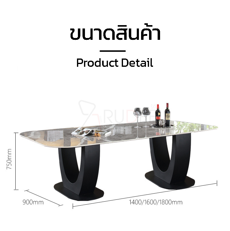 โต๊ะอาหารมีขนาดให้เลือก 140X80CM / 160X80CM / 180X90CM