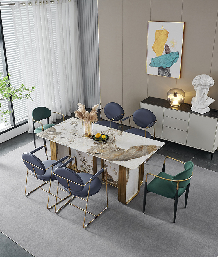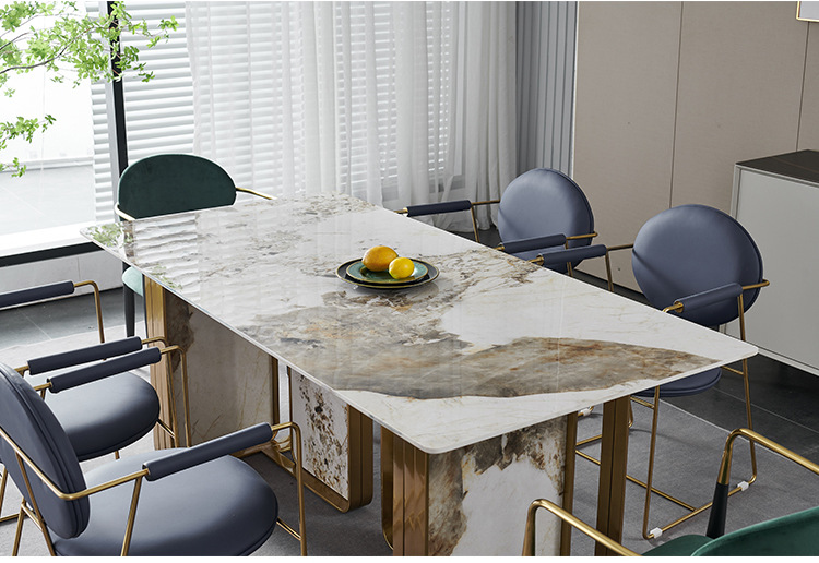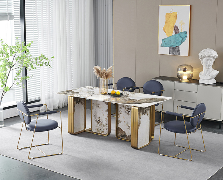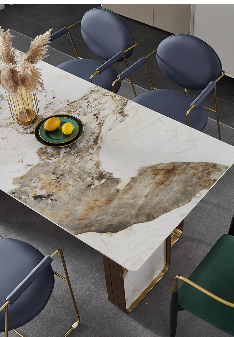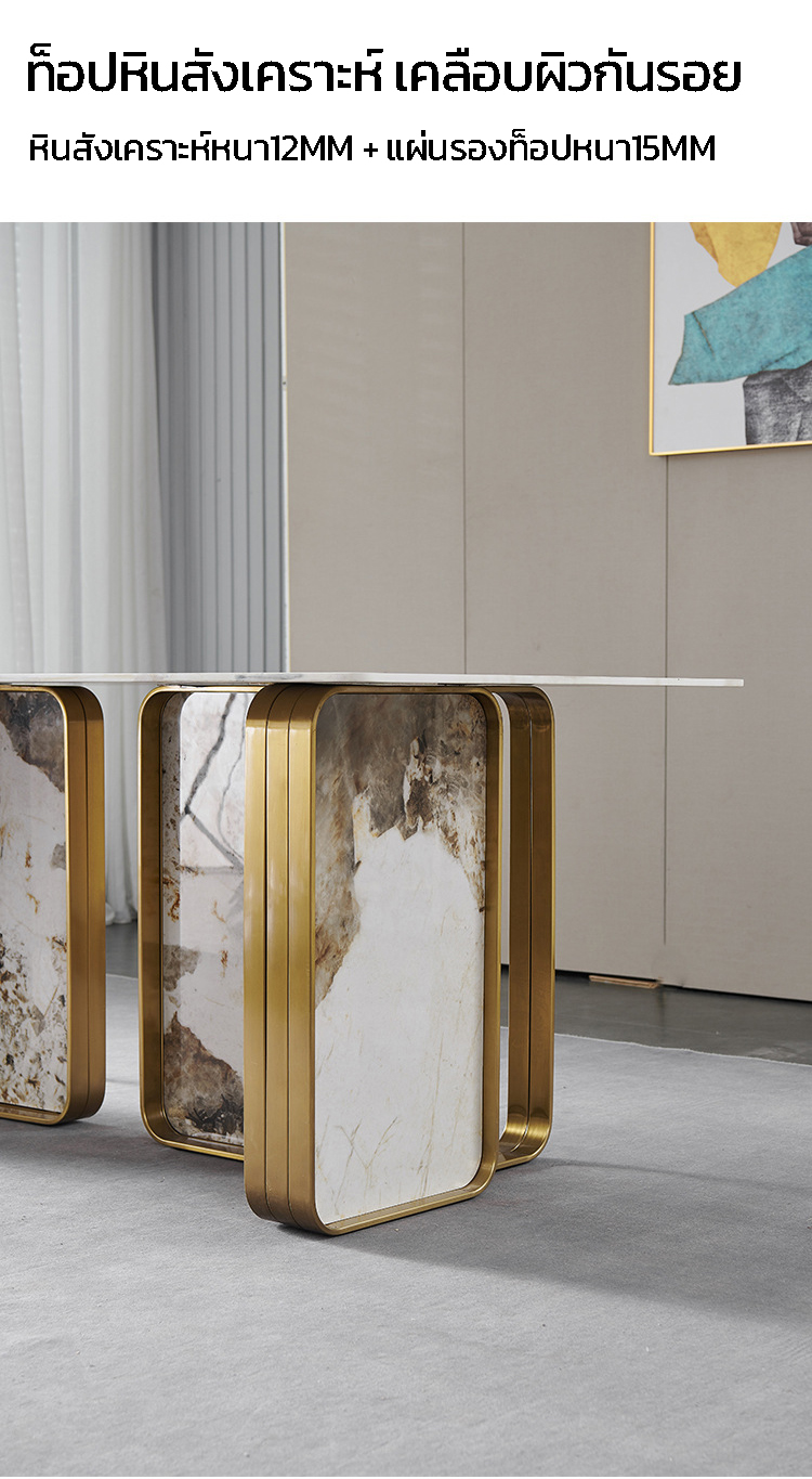 โต๊ะอาหารหินอ่อนสังเคราะห์ โครงขาสแตนเลส สีทอง