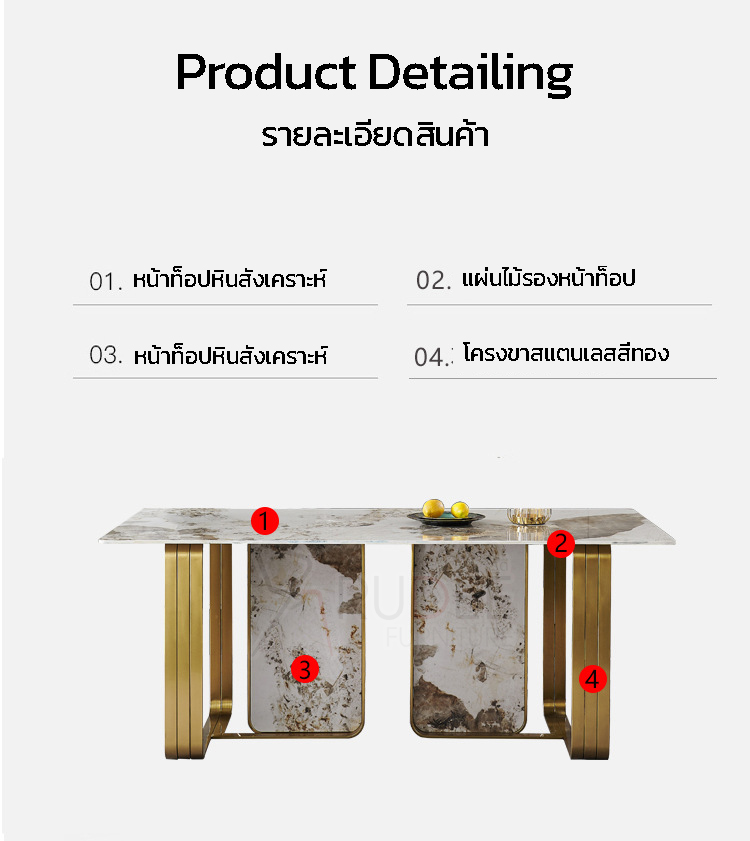 โครงขาเลือกใช้วัสดุสแตนเลลสHairlineเงางามออกแบบและผลิตเฟอร์นิเจอร์หินอ่อน