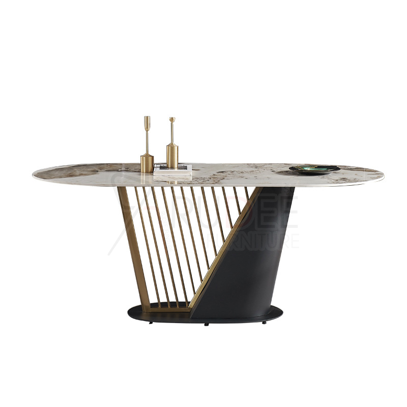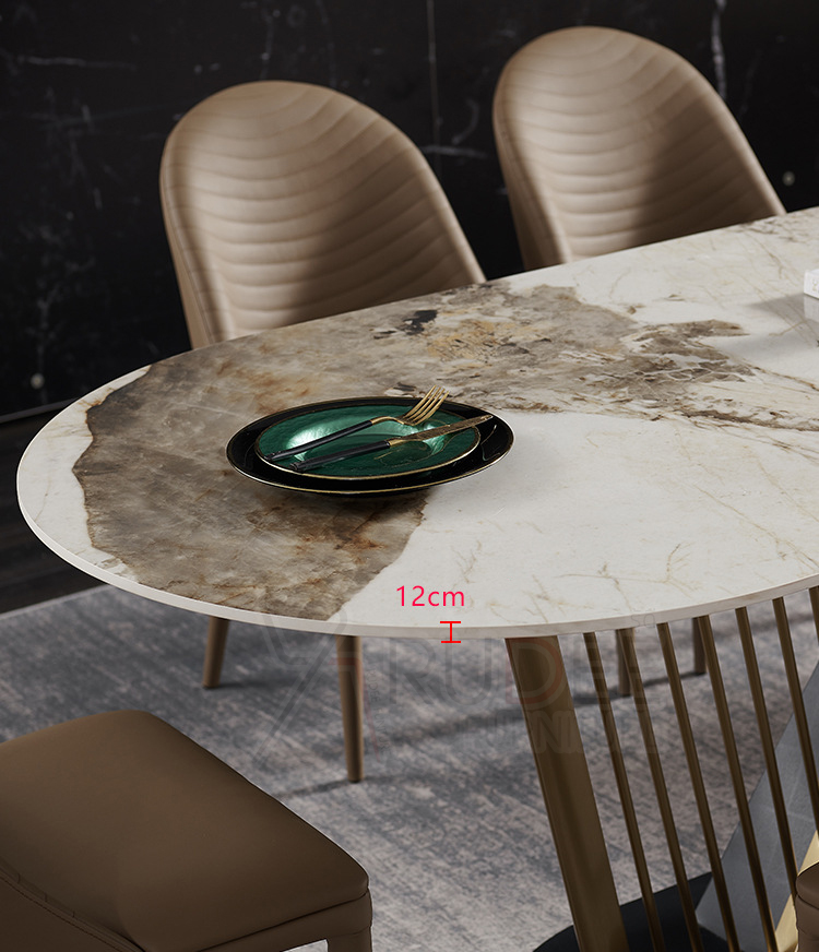 โต๊ะอาหารหินอ่อนสังเคราะห์ ขาสแตนเลสดีไซน์เครื่องดนตรี