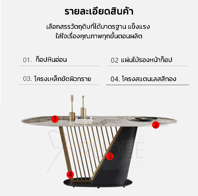 โครงขาเลือกใช้วัสดุสแตนเลลสHairlineเงางามออกแบบและผลิตเฟอร์นิเจอร์หินอ่อน