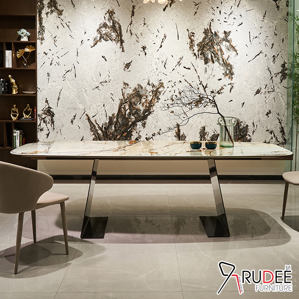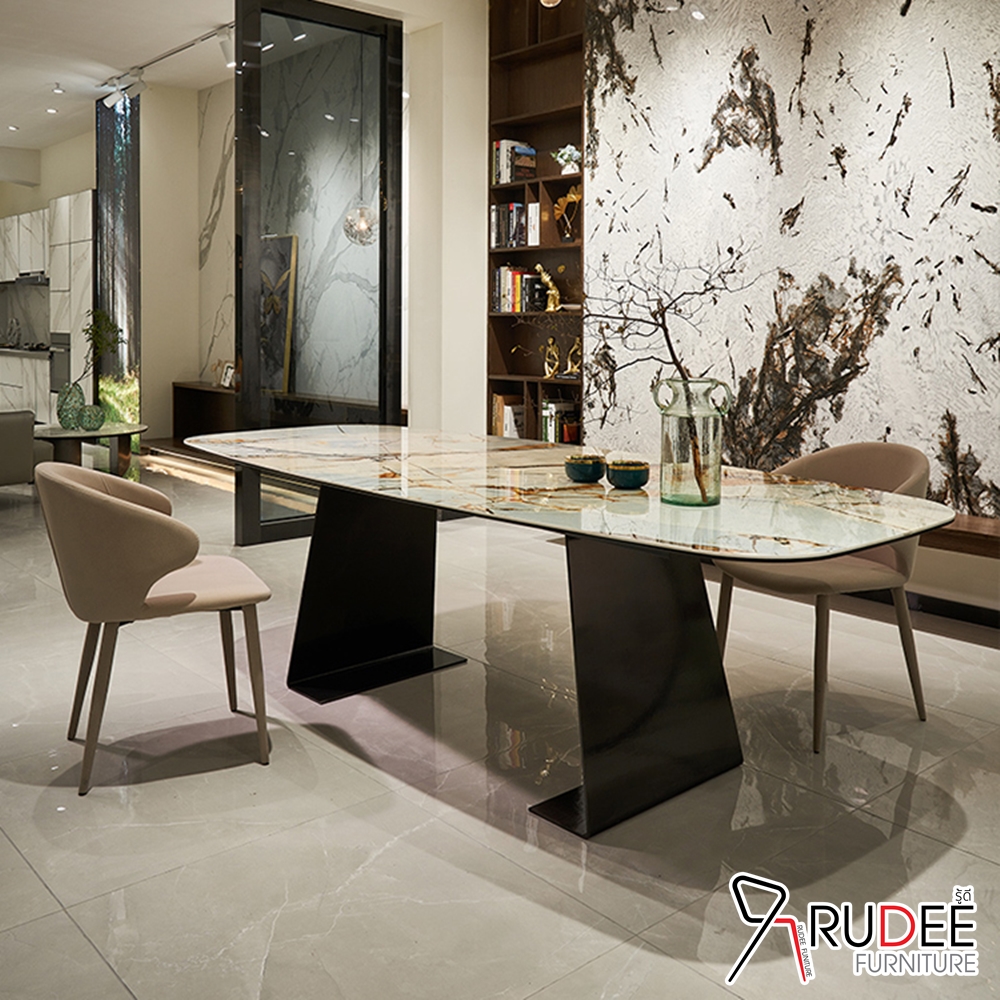 โต๊ะอาหารหินอ่อน โครงขาสแตนเลส RD-DINTABLE-RB-14