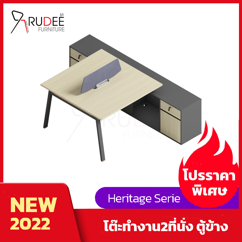 โต๊ะทำงาน2ที่นั่งมีตู้ด้านข้างยาว ลายไม้สีอ่อน ลวดลายธรรมชาติ Heritage serie
