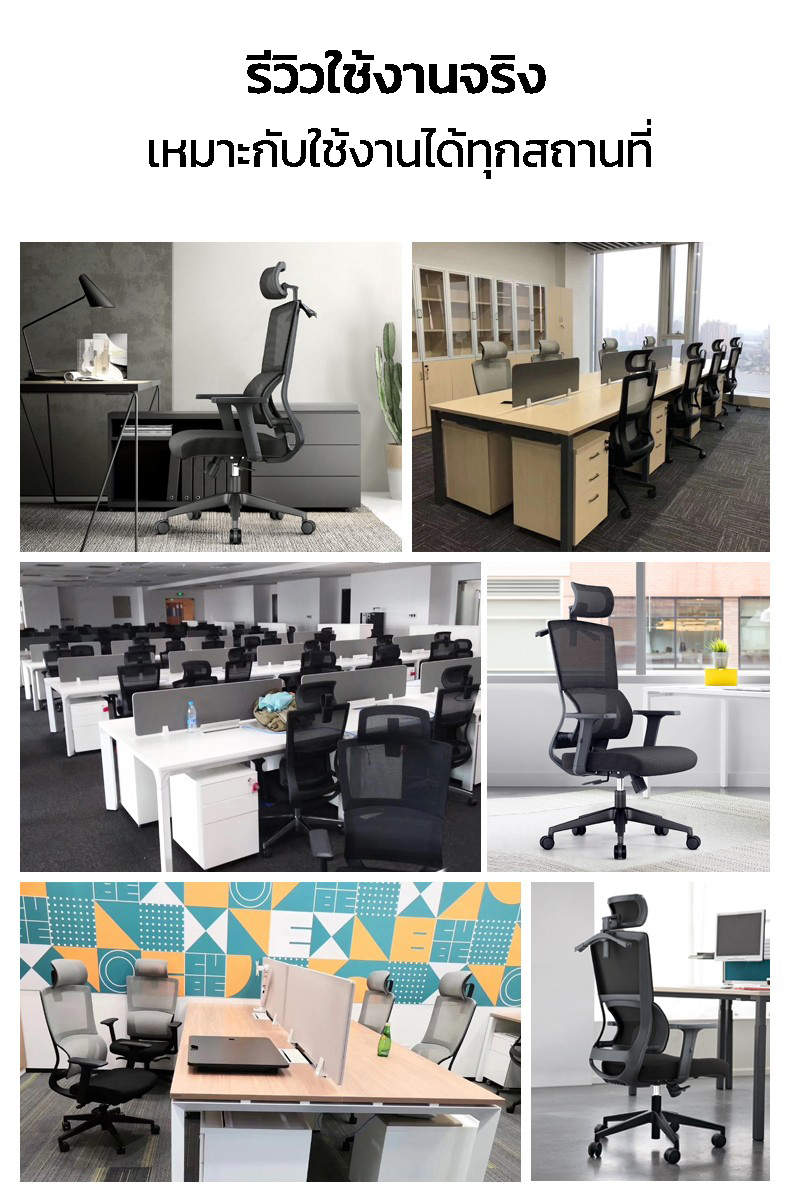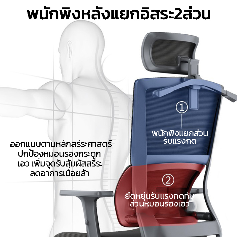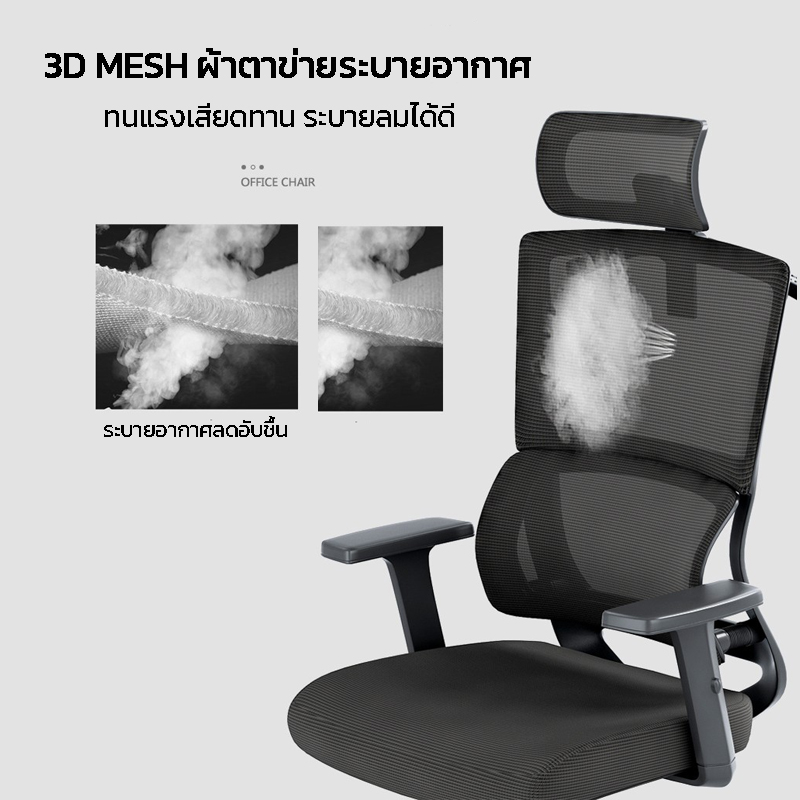 พนักพิงทำจากผ้า Mesh คุณภาพสูง นั่งแล้วไม่ร้อน