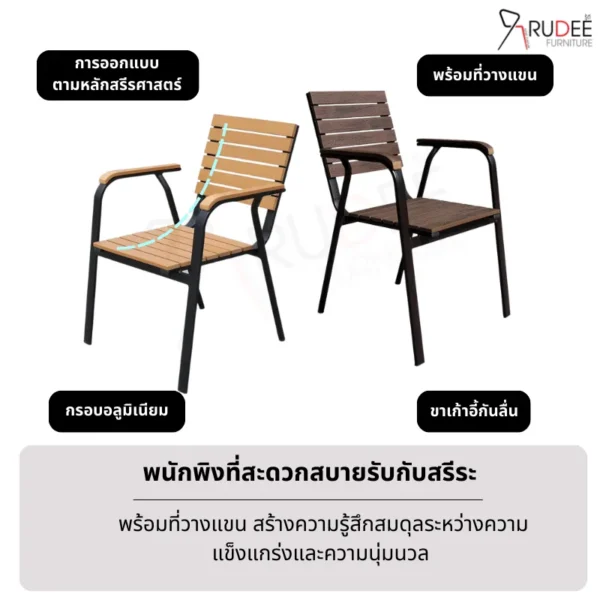 New เก้าอี้สนามอลูมิเนียม วัสดุ WPC รุ่น Rd-Outdoor-Chair-ZF1014C