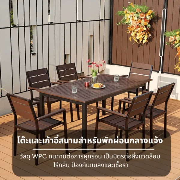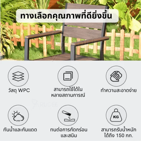 เก้าอี้สนาม WPC แข็งแรง ทนแดด ทนฝน ไม่เป็นสนิม รับน้ำหนักได้ 150 กก. ดูแลง่าย ใช้ได้ทุกพื้นที่