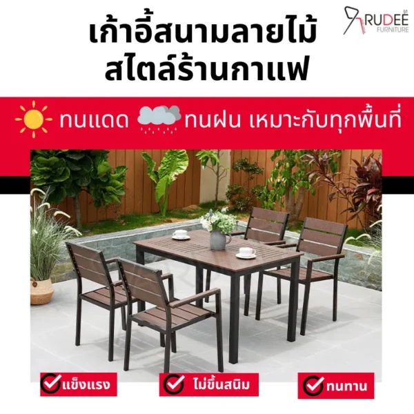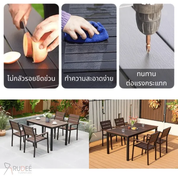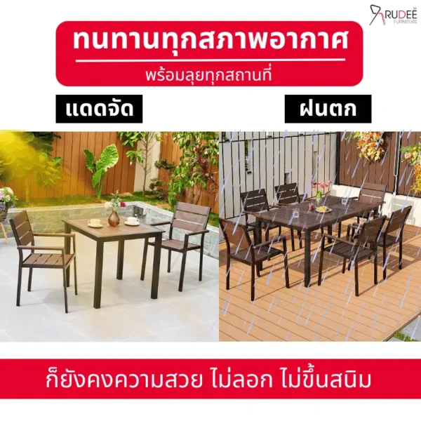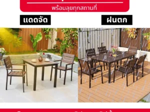 จึงมั่นใจได้ว่าสามารถใช้งานได้ยาวนานโดยไม่ต้องกังวลเรื่องการผุพังหรือแมลงกัดแทะ นอกจากนี้ ยังดูแลรักษาง่าย เพียงเช็ดทำความสะอาดก็กลับมาเหมือนใหม่ เหมาะสำหรับการใช้งานหลากหลาย ไม่ว่าจะวางในสวน ระเบียง ริมสระน้ำ หรือหน้าร้านกาแฟก็ลงตัวสุด ๆ ถ้าคุณกำลังมองหาเฟอร์นิเจอร์กลางแจ้งที่ครบเครื่องขนาดนี้