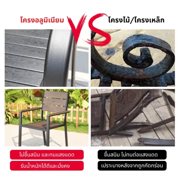 เก้าอี้สนามอลูมิเนียม วัสดุ WPC โครงอลูมิเนียม ทนแดดทนฝน