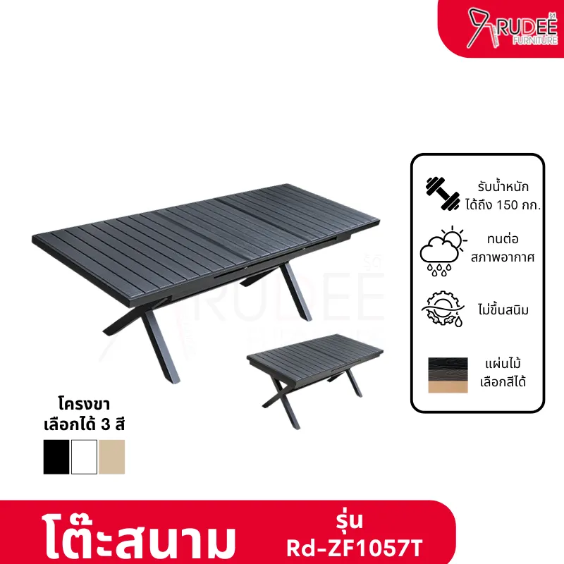 New โต๊ะสนามอลูมิเนียมวัสดุ WPC รุ่น Rd-Outdoor-Table-ZF1057T โต๊ะสนามวัสดุ WPC ตัวนี้คือคำตอบที่ใช่ ด้วยการออกแบบสไตล์โมเดิร์นที่ดูดี เข้ากับทุกมุมของบ้าน ร้านกาแฟ หรือพื้นที่พักผ่อนกลางแจ้ง