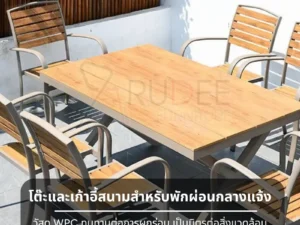 โต๊ะสนามอลูมิเนียม วัสดุ WPC โครงอลูมิเนียม ทนแดดทนฝน