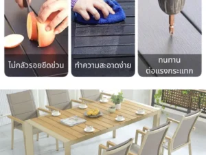 จึงมั่นใจได้ว่าสามารถใช้งานได้ยาวนานโดยไม่ต้องกังวลเรื่องการผุพังหรือแมลงกัดแทะ นอกจากนี้ ยังดูแลรักษาง่าย เพียงเช็ดทำความสะอาดก็กลับมาเหมือนใหม่เหมาะสำหรับการใช้งานหลากหลาย ไม่ว่าจะวางในสวน ระเบียง ริมสระน้ำ หรือหน้าร้านกาแฟก็ลงตัวสุด ๆ ถ้าคุณกำลังมองหาเฟอร์นิเจอร์กลางแจ้งที่ครบเครื่องขนาดนี้