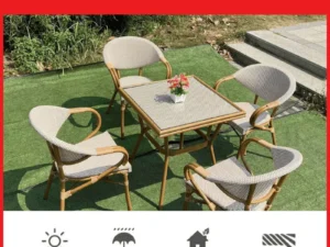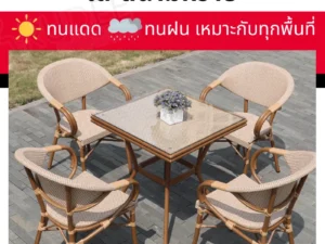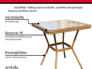 โต๊ะสนามอลูมิเนียมหวาย โครงอลูมิเนียม ทนแดดทนฝน