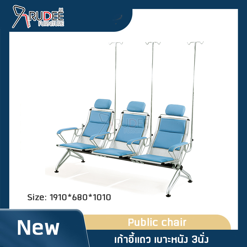 เก้าอี้แถวสาธารณะ3ที่นั่ง โครงขาเหล็ก เบาะหนัง มีที่แขวนน้ำเกลือ