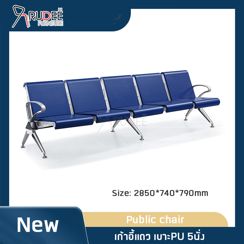 เก้าอี้แถวสาธารณะ5ที่นั่ง โครงขาเหล็ก เบาะPU โพลียูรีเทน