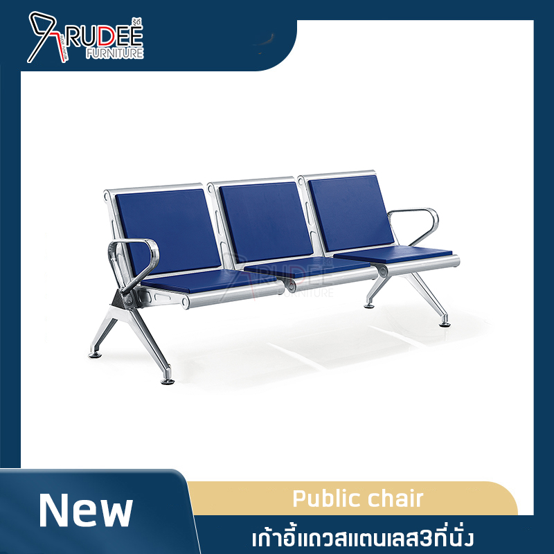 เก้าอี้แถวสาธารณะ3ที่นั่ง โครงสแตนเลส304 เสริมเบาะหนัง