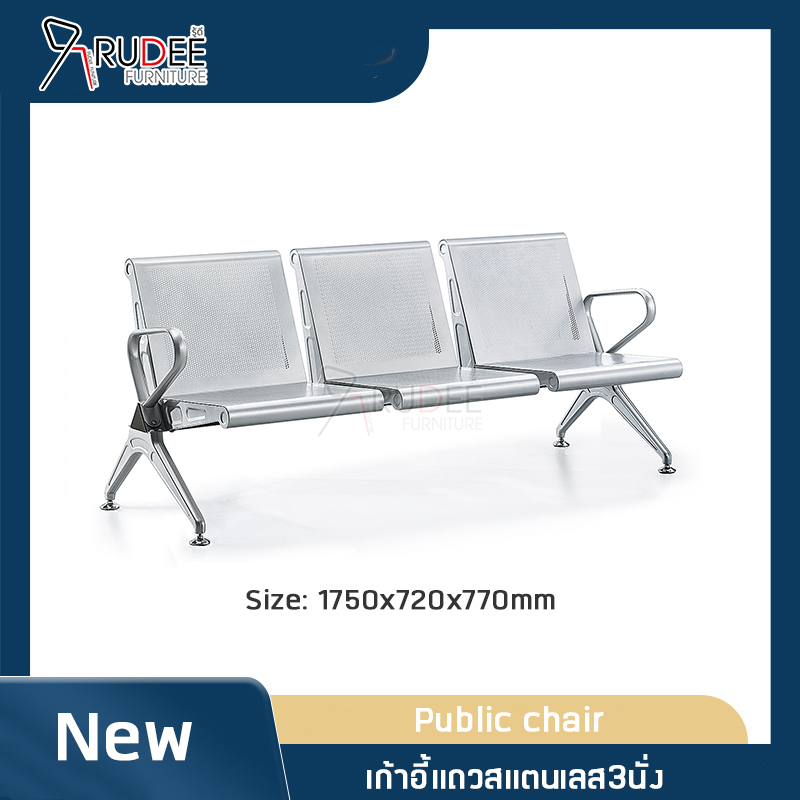 เก้าอี้แถวสาธารณะ3ที่นั่ง โครงสแตนเลส304 ไร้สนิม