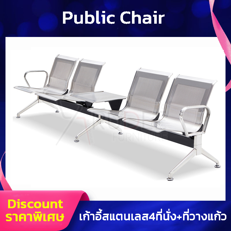 เก้าอี้สแตนเลส4ที่นั่ง มีที่วางแก้วตรงกลาง